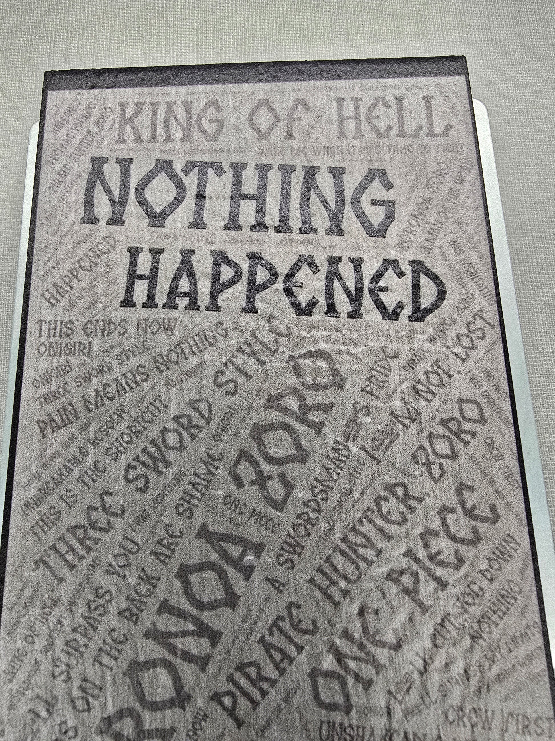 * Ultimate Stoicism: While you’re complaining about a paper cut or a stubbed toe, Zoro is standing there on your wall, covered in a lethal amount of someone else’s bubble-paw-stress-energy, calmly insisting that "Nothing Happened." It’s the ultimate "get over it" motivation.